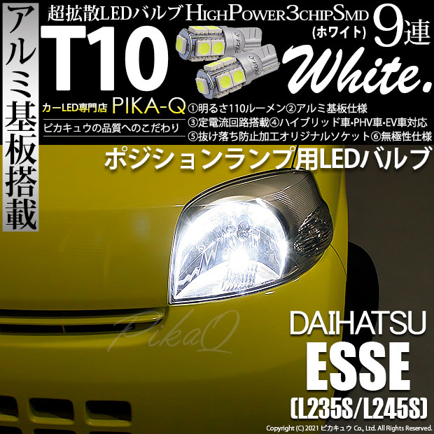 【即納】【メール便可】ダイハツ エッセ[L235S/L245S]対応 ポジションランプ用LED T10 3chip HYPER S...