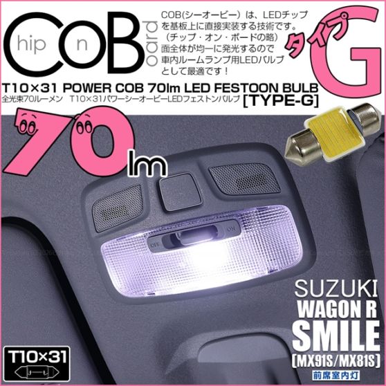【即納】【メール便可】スズキ ワゴンRスマイル[MX91S/MX81S]対応 前席室内灯用LED T10×31 POWER COB...