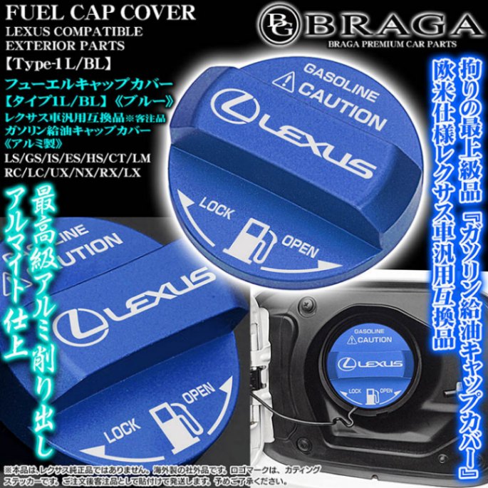 ES/HS/CT[タイプ1L/BL]給油 フューエル キャップ カバー[アルミ製ブルー]レクサス車互換品カッティングステッカー付/...