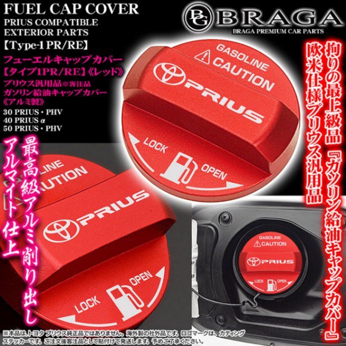 [タイプ1PR/RE]プリウス汎用 ガソリン給油フューエル キャップ カバー[アルミ製/レッド]PRIUS &トヨタマークステッカ...