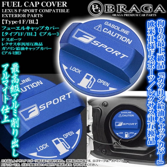 GS/GSF[タイプ1L/BL]給油 フューエル キャップ カバー[アルミ製ブルー]レクサス車互換品カッティングステッカー付/客注...