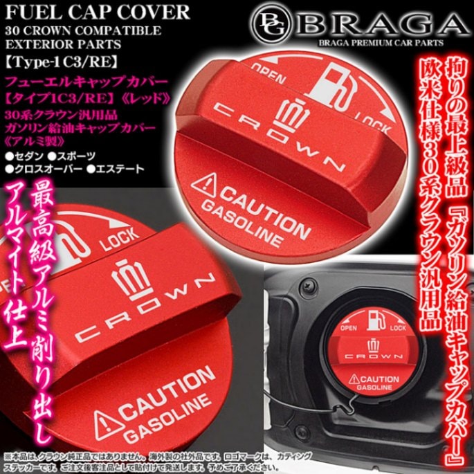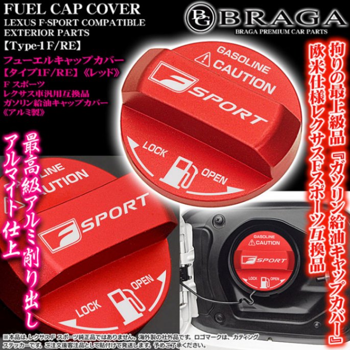 GS/GSF[タイプ1F/RE]給油 フューエル キャップ カバー[アルミ製レッド]Fスポーツ/レクサス車互換品ステッカー付/客注...