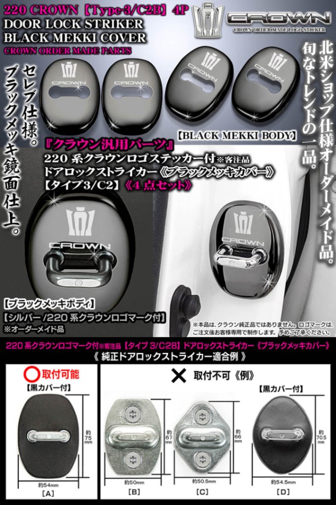 【タイプ3/C2】220/20クラウン《王冠・CROWNロゴマーク付/シルバー》(客注品)4点ドアロック ストライカー カバー/メ...