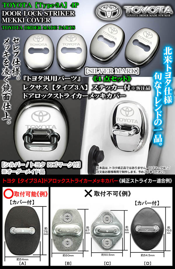 【タイプ3A】[トヨタ]シルバーロゴマーク付(客注品)トヨタ汎用ドアロック ストライカー カバー4点《シルバーメッキ/鏡面研磨》ブ...