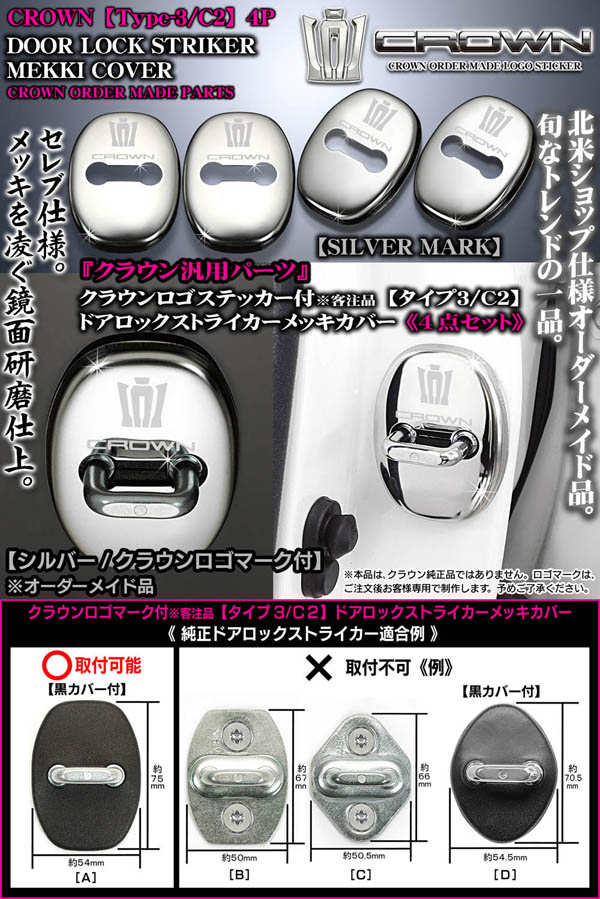 【タイプ3/C2】180/170クラウン《王冠・CROWNロゴマーク付/シルバー》(客注品)4点ドアロック ストライカー カバー/...