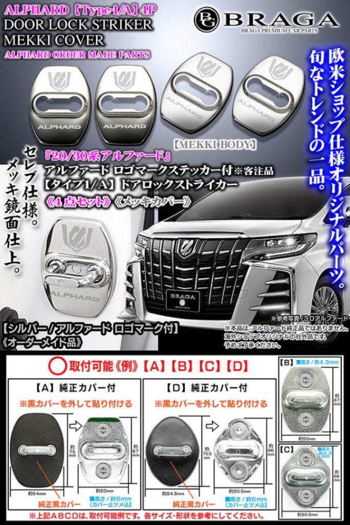 30系アルファード【タイプ1/A】シルバー/ALPHARD ロゴマーク付/客注品ドアロック ストライカー/4点セット《メッキカバー...