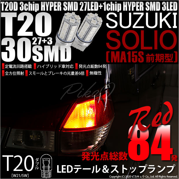 【即納】【メール便可】スズキ ソリオ[MA15S]対応 テール&ストップランプ用LED T20d 3chip HYPER SMD3...