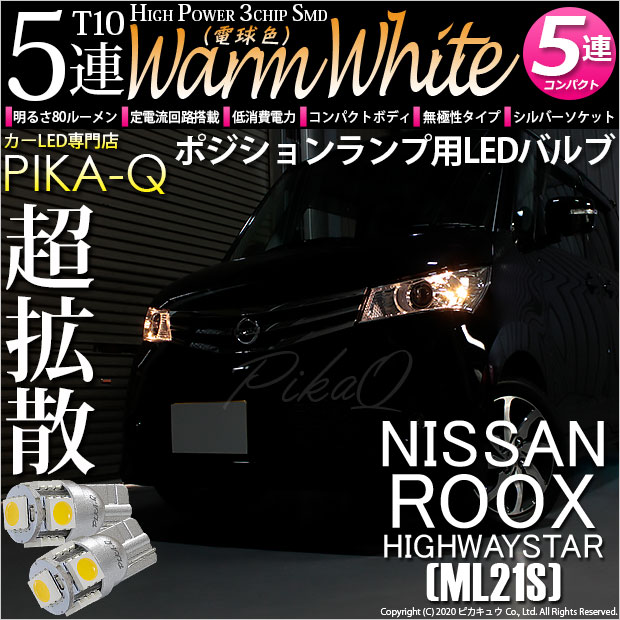【即納】【メール便可】ニッサン ルークス ハイウェイスター[ML21S]対応 ポジションランプ用LED T10 3chip HYP...