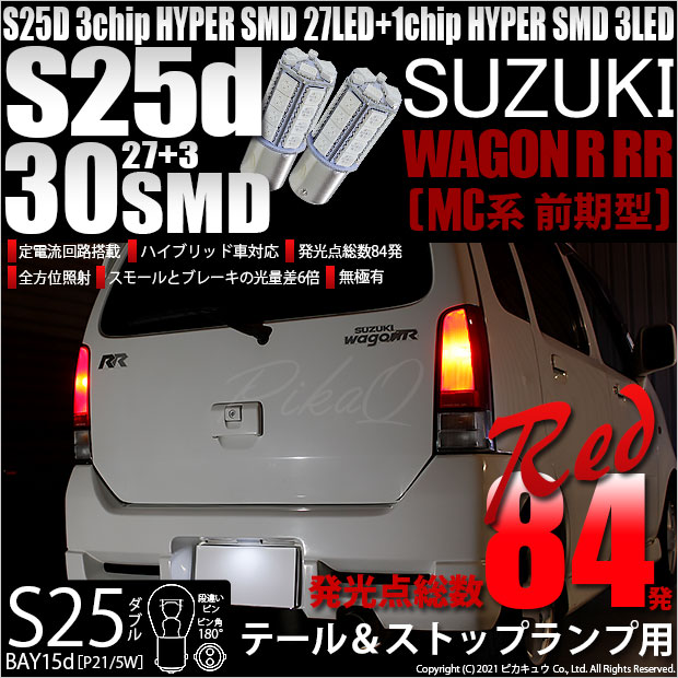 【即納】【メール便可】スズキ ワゴンR RR[MC系 前期モデル]対応 テール&ストップランプ用LED S25d[BAY15d]3...