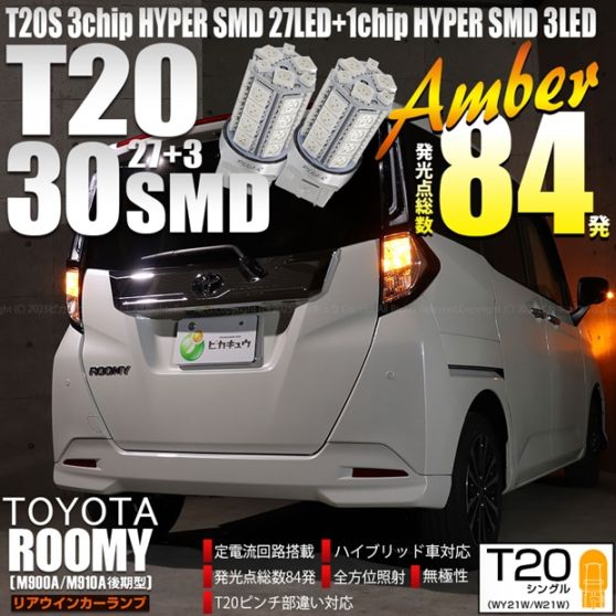 【即納】【メール便可】トヨタ ルーミー[M900A/M910A 後期]対応 リアウインカーランプ用LED T20s 3chip H...