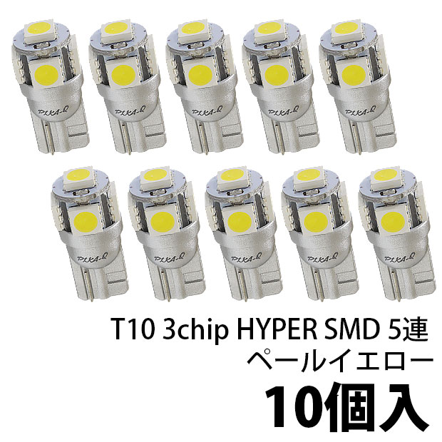 【即納】【10個売り】T10 3chip HYPER SMD 5連 ウェッジシングル LEDカラー:ペールイエロー 無極性