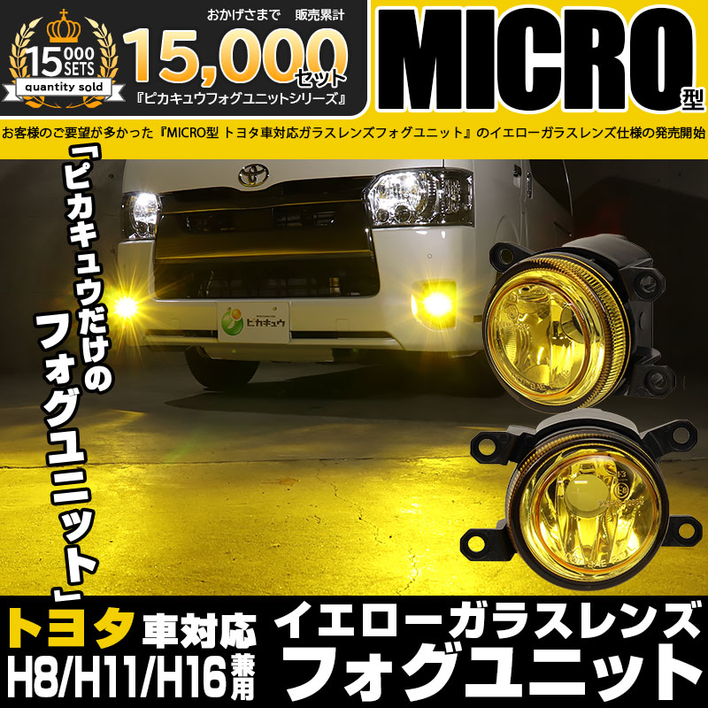 トヨタ車対応 純正LEDフォグランプと交換可能なフォグランプユニット[MICRO型]トヨタ車対応 イエロー ガラスレンズフォグ ユ...