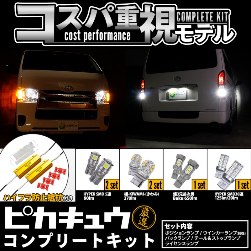 ピカキュウ厳選 LED コンプリートキット 明るさ特化型 6セット12個入 ポジション/ウインカー(フロント・リア)/バック/テー...