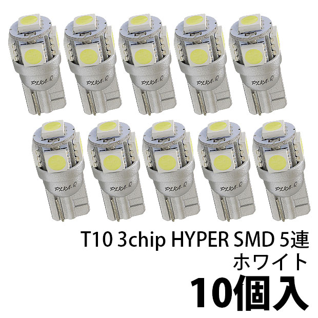 【即納】【10個売り】T10 3chip HYPER SMD 5連 ウェッジシングル LEDカラー:ホワイト 無極性