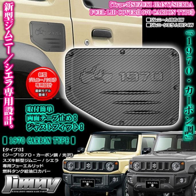 【タイプ3】スズキジムニーJB74W新型シエラ用 ABS製フューエルリッド/燃料タンク 給油口 カバー[ジープ1970/カーボン調...