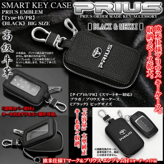 10/20/30/40/50系プリウス[タイプ10/PR]トヨタ/プリウス キーケース[Lサイズ/ブラック]エンブレム/窓/フック...