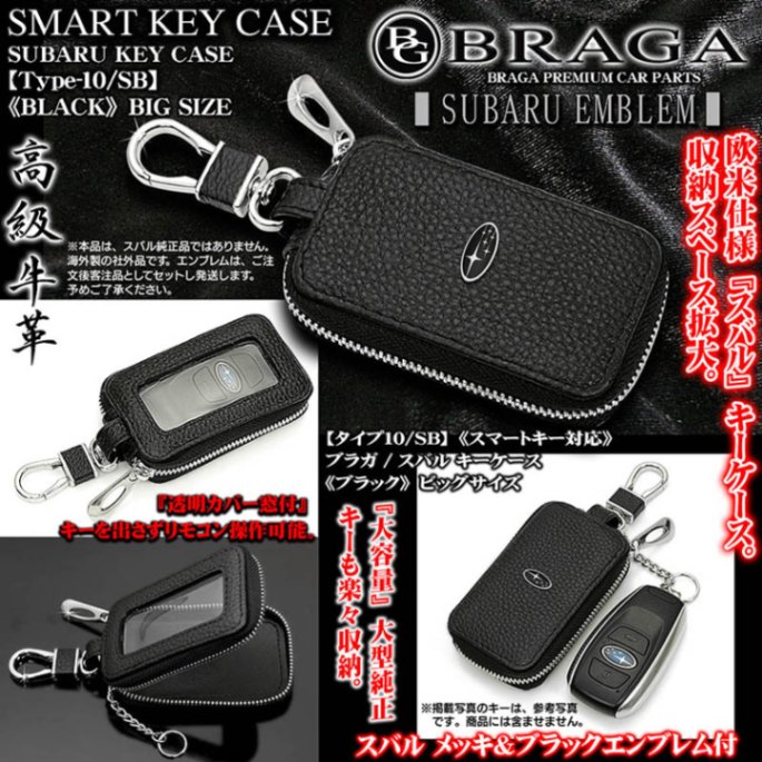 レガシィ/ワゴン/インプレッサ/スバル キーケース[Lサイズ/ブラック]スバルエンブレム付[タイプ10/SB]窓付/スマートキー対...