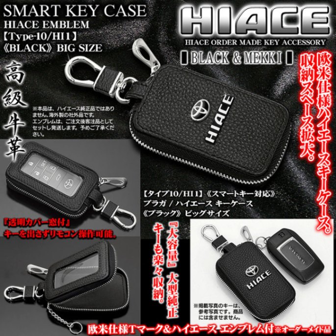 200系ハイエース全車キーケース[ビッグLサイズ/ブラック]Tマーク&HIACEエンブレム付[タイプ10/HI1]窓,フック付/ス...