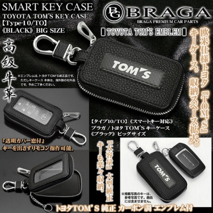 トヨタ/トムス キーケース[ビッグLサイズ/ブラック]TOM\'S純正エンブレム付[タイプ10/TO]透明窓,フック付/スマートキ...