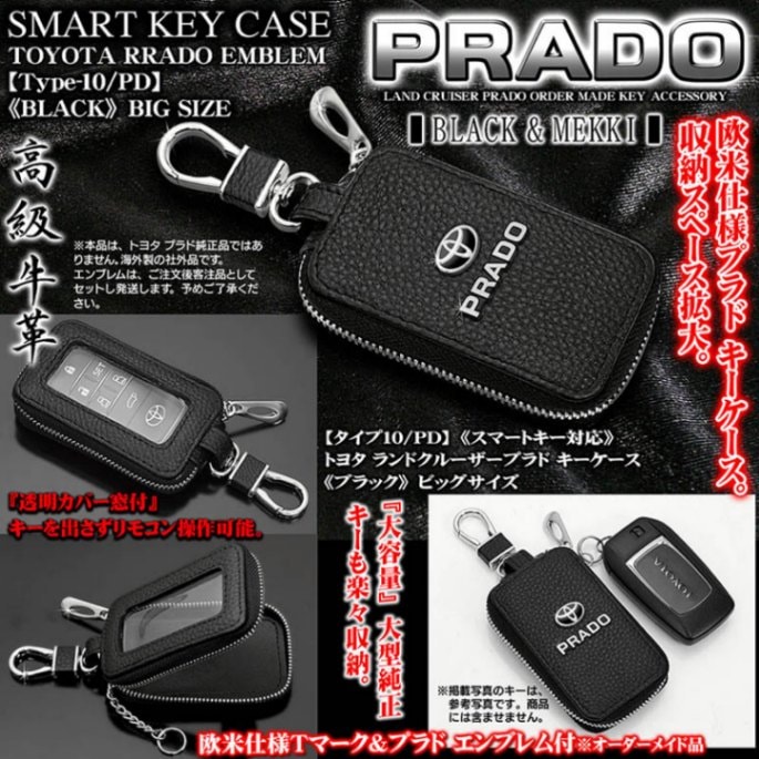 120/150系ランクル プラド[タイプ10/PD]トヨタ/プラド キーケース[Lサイズ/ブラック]エンブレム,窓,フック付/スマ...