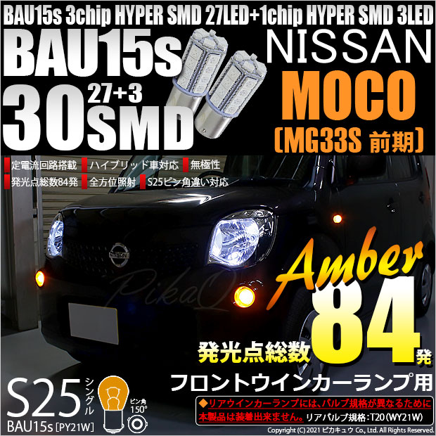 【即納】【メール便可】ニッサン モコ[MG33S 前期モデル]対応 フロントウインカー用LED [BAU15S]S25s[BAU1...
