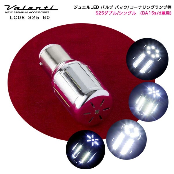 ヴァレンティ:LED クロームバルブ コーナリング/バックランプ S25ダブル/シングル(BA15s/d兼用) ホワイト 6500...