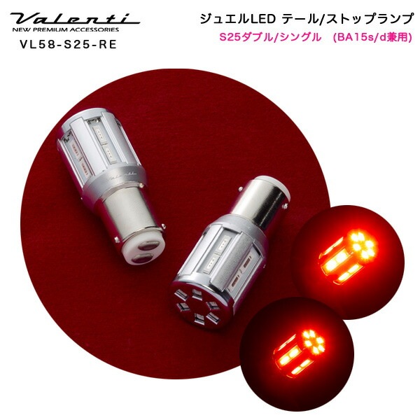 ヴァレンティ:LED クロームバルブ テールランプ ストップランプ S25ダブル/シングル(BA15s/d兼用) レッド DC12...