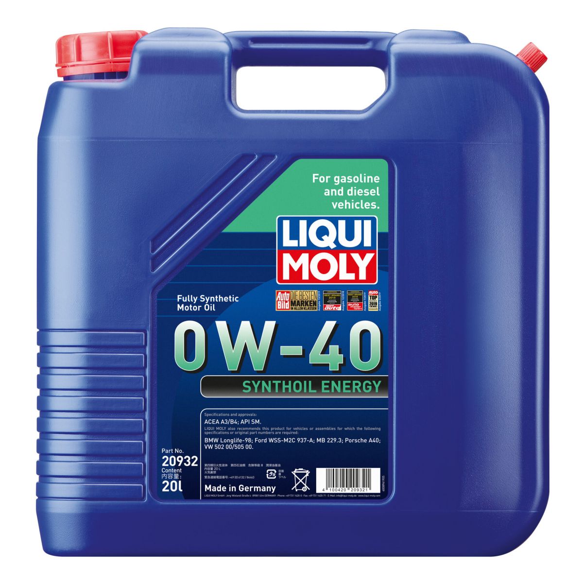 LIQUI MOLY エンジンオイル シンゾイル エナジー 0W40 20L 20932