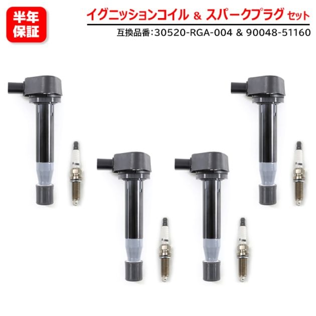 イリジウム スパークプラグ & イグニッションコイル 4セット 30520-RGA-004 90048-51160 互換品 6ヵ月...