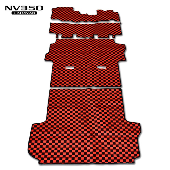 【決算SALE】E26 キャラバン / NV350キャラバン プレミアムGX用 フロアマット チェック柄 ブラック・レッド 4点セ...