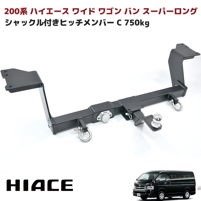 トヨタ 200系ハイエース ワイド ワゴン バン スーパーロング ヒッチメンバー クラスC 750kg シャックル付き ボールマウ...