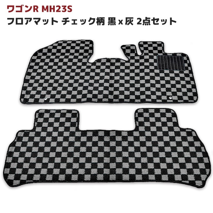 ワゴンR MH23S (スティングレー対応) フロアマット チェック柄 2点セット ブラック/グレー カーマット スズキ 内装 カ...