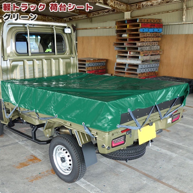 汎用 軽トラ 荷台シート グリーン 約220×192cm ゴムバンド付き 荷台 カバー 防水 平張り 雨よけ エステル