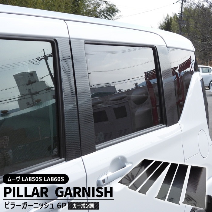 ダイハツ ムーヴ LA850S LA860S サイド ピラー ガーニッシュ 6Pセット カーボン調 新品 1台分 ウインドウ ウィ...