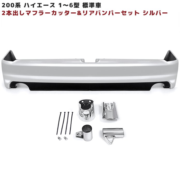 200系ハイエース 標準 リア バンパー & 2本出し マフラー カッター 新品 塗装品 1E7 シルバー 1型 2型 3型 4型...