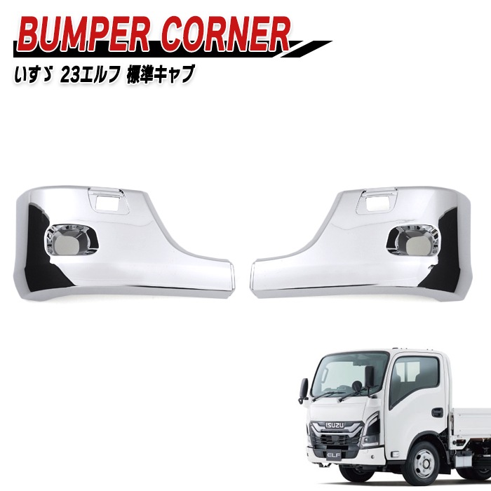 いすゞ 7代目 23エルフ 標準キャブ メッキ フロントバンパー コーナー 左右セット 新品 サイド デコトラ 外装 カスタムパー...