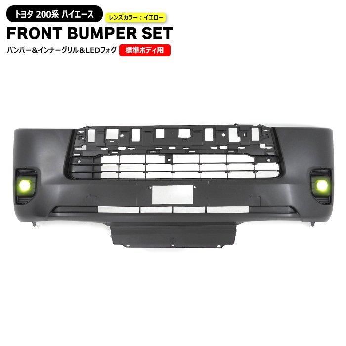 200系ハイエース 標準 7型 8型 9型 純正タイプ フロント バンパー & LED イエロー フォグ ランプ & インナーグリ...
