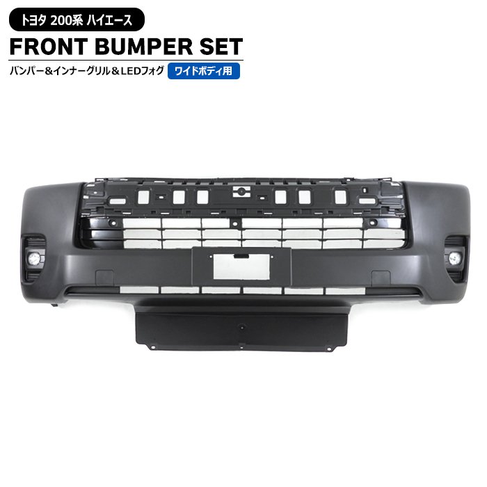 200系ハイエース ワイド 7型 8型 9型 純正タイプ フロント バンパー & LED フォグ ランプ & インナーグリル セッ...