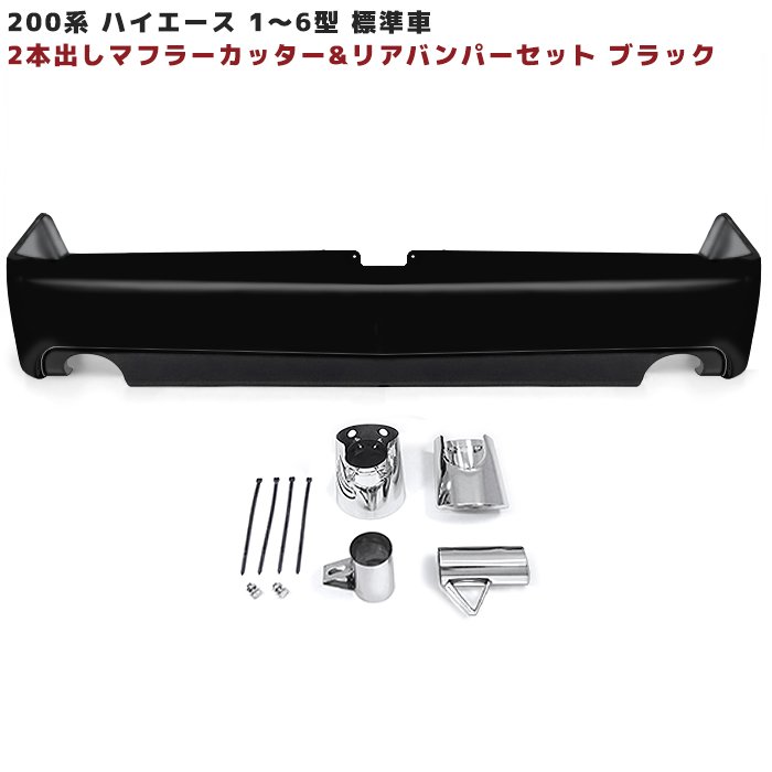 200系ハイエース 標準 リア バンパー & 2本出し マフラー カッター 新品 塗装品 209 ブラック 1型 2型 3型 4型...