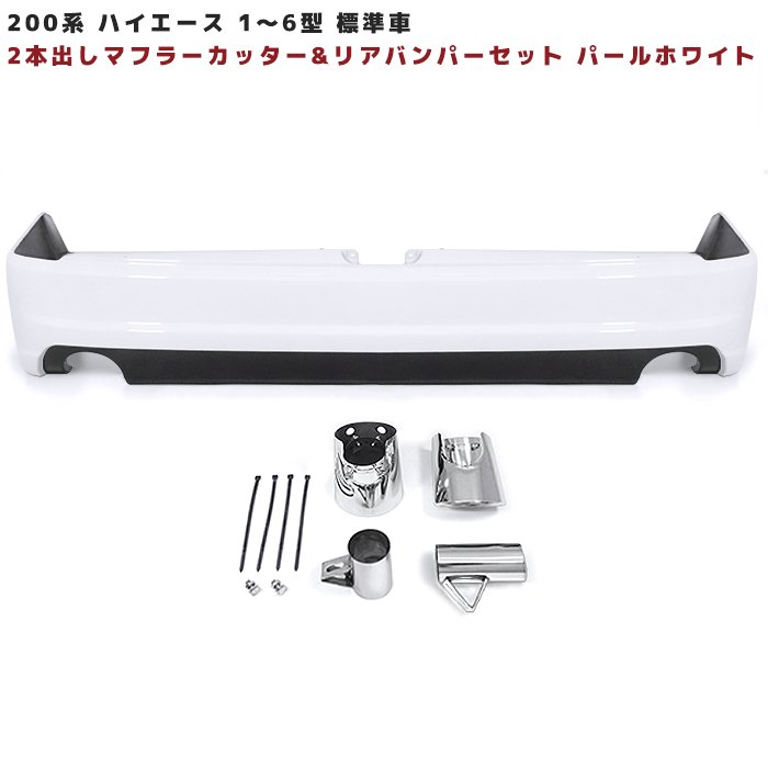 200系ハイエース 標準 リア バンパー & 2本出し マフラー カッター 新品 塗装品 070 パールホワイト 1型 2型 3型...