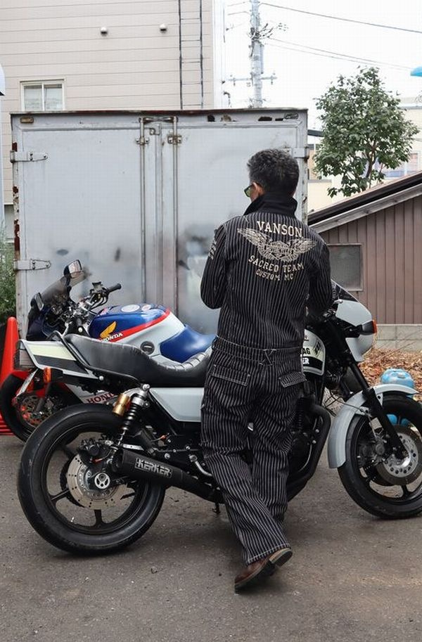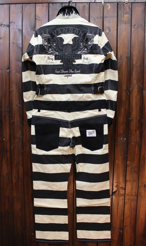 VANSON バンソン NVAO-2002 オールインワン 刺繍ツナギ ストレッチ ボーダー