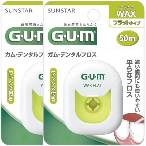 【2個セット】GUM(ガム)デンタルフロス ワックス50M フラットタイプ ×2【ネコポス】