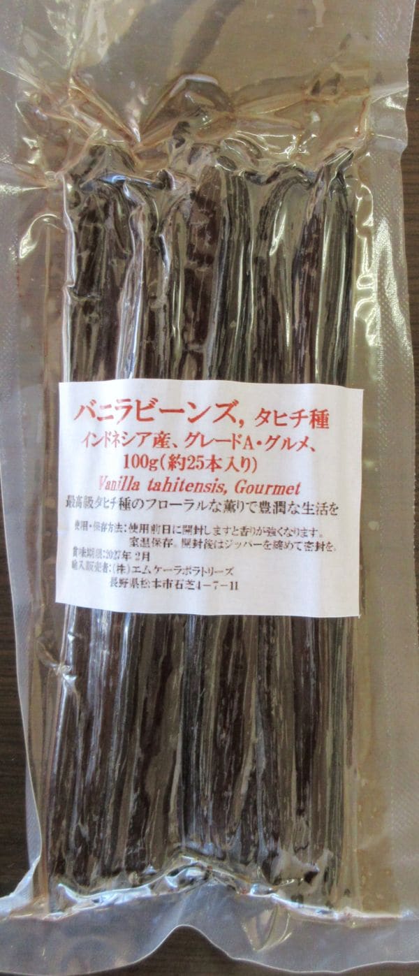 インドネシア原産、グルメのタヒチ種バニラビーンズ グレードA、100g (約25本入り)