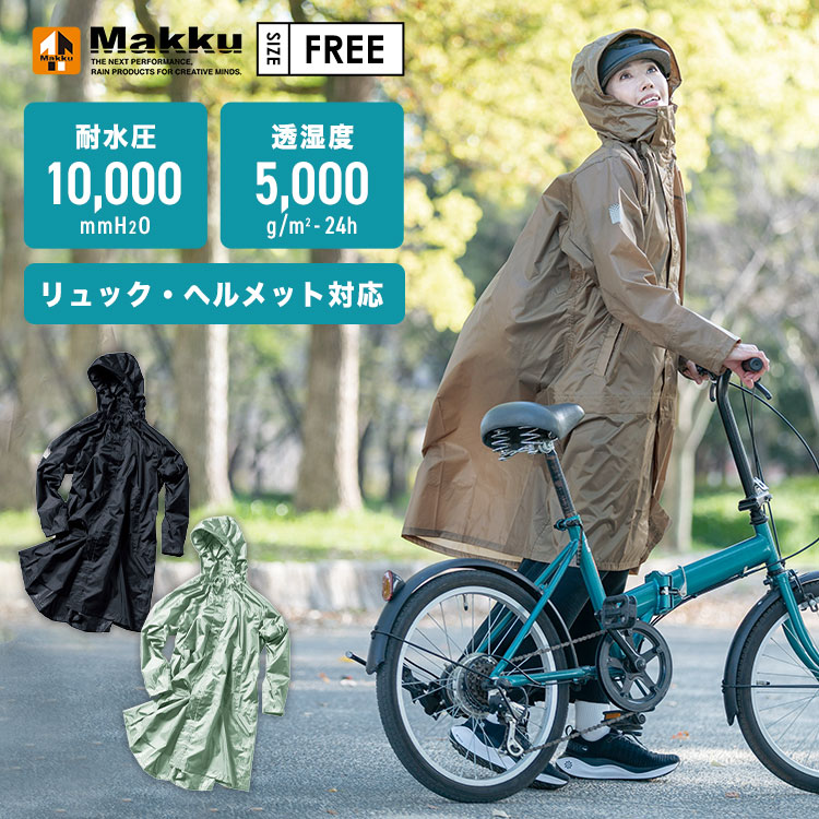 レインコート 自転車 通学 リュック ヘルメット 対応 ママ レディース メンズ makku マック 高校生 蒸れない 回転 フー...