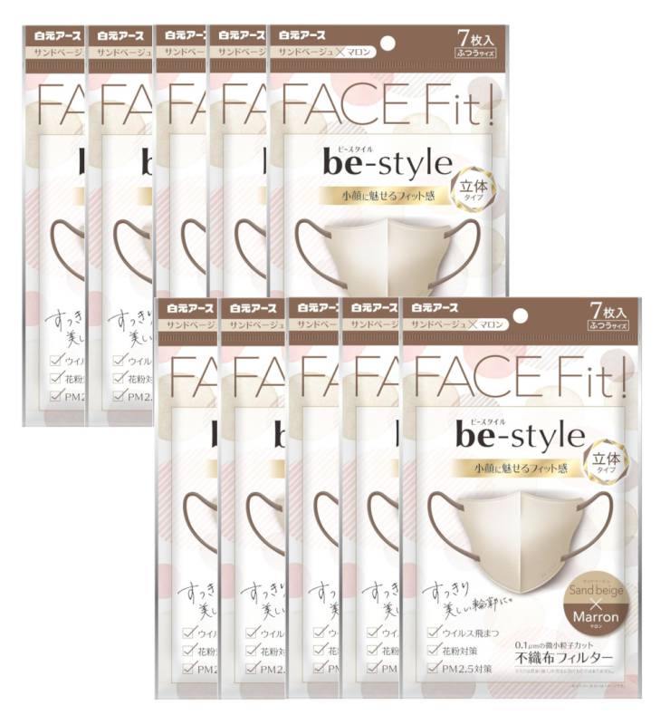 be-style ビースタイル 立体マスク ふつうサイズ サンドベージュ×マロン 7枚入×10【10個セット】送料無料 バイカラー...