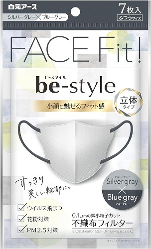 be-style ビースタイル 立体マスク ふつうサイズ シルバーグレー×ブルーグレー 7枚入【ネコポス】送料無料 バイカラー お...