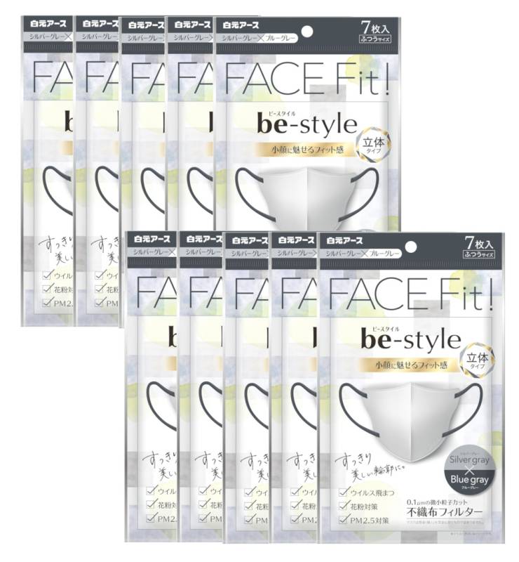 be-style ビースタイル 立体マスク ふつうサイズ シルバーグレー×ブルーグレー 7枚入×10【10個セット】送料無料 バイ...
