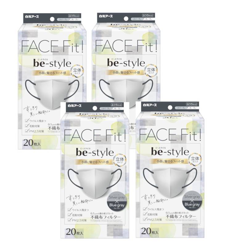 be-style ビースタイル 立体マスク ふつうサイズ シルバーグレー×ブルーグレー 20枚入×4【4個セット】送料無料 バイカ...