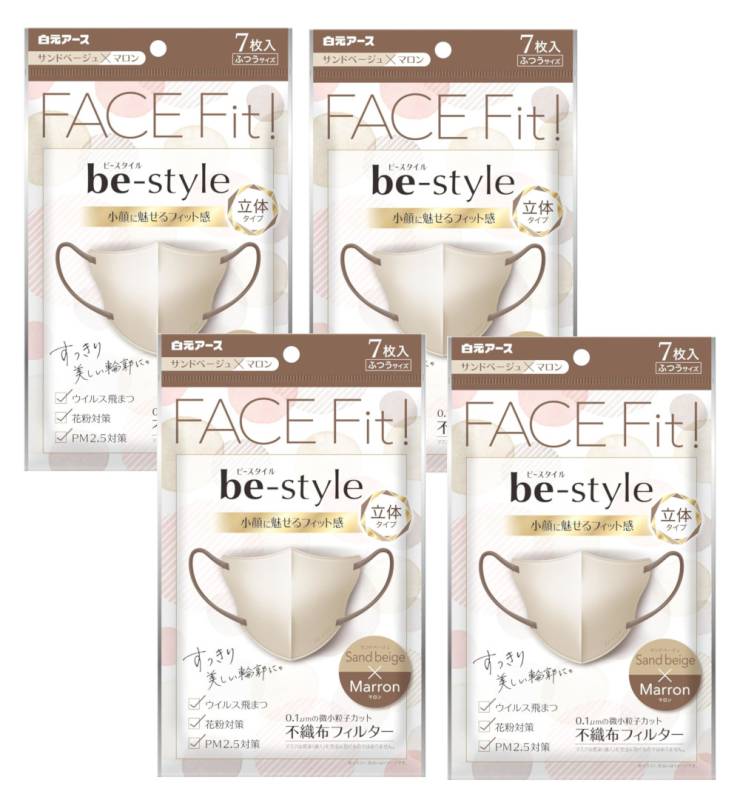 be-style ビースタイル 立体マスク ふつうサイズ サンドベージュ×マロン 7枚入×4【4個セット】【ネコポス】送料無料 バ...