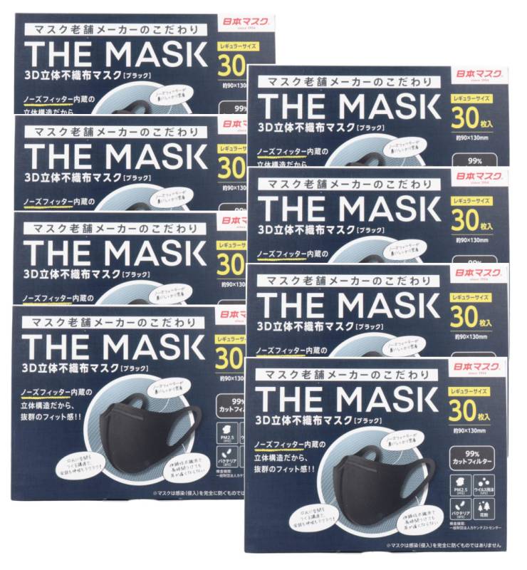 横井定 THE MASK 3D立体不織布マスク ブラック レギュラーサイズ 30枚入×8【8個セット】送料無料